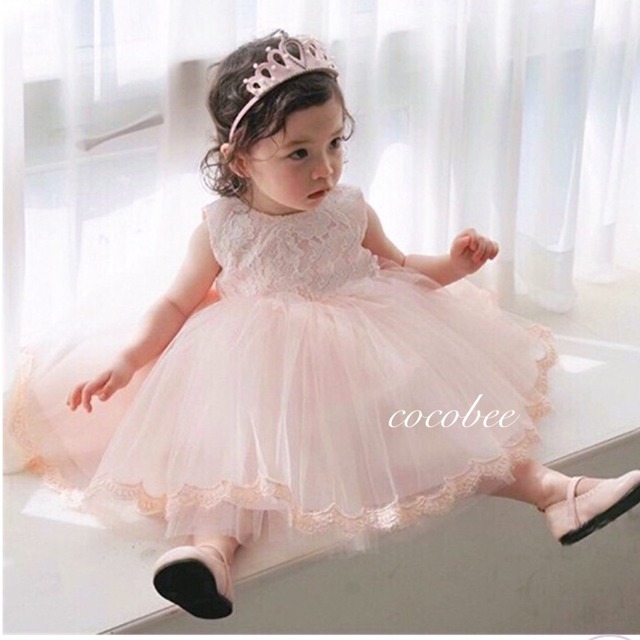 【即納/送料無料】SALE好評子どもドレスリボン付き チュールスカート ふんわりドレスベビードレスお宮参り百日祝い結婚式入園式撮影コーデ 月齢フォットコーデ