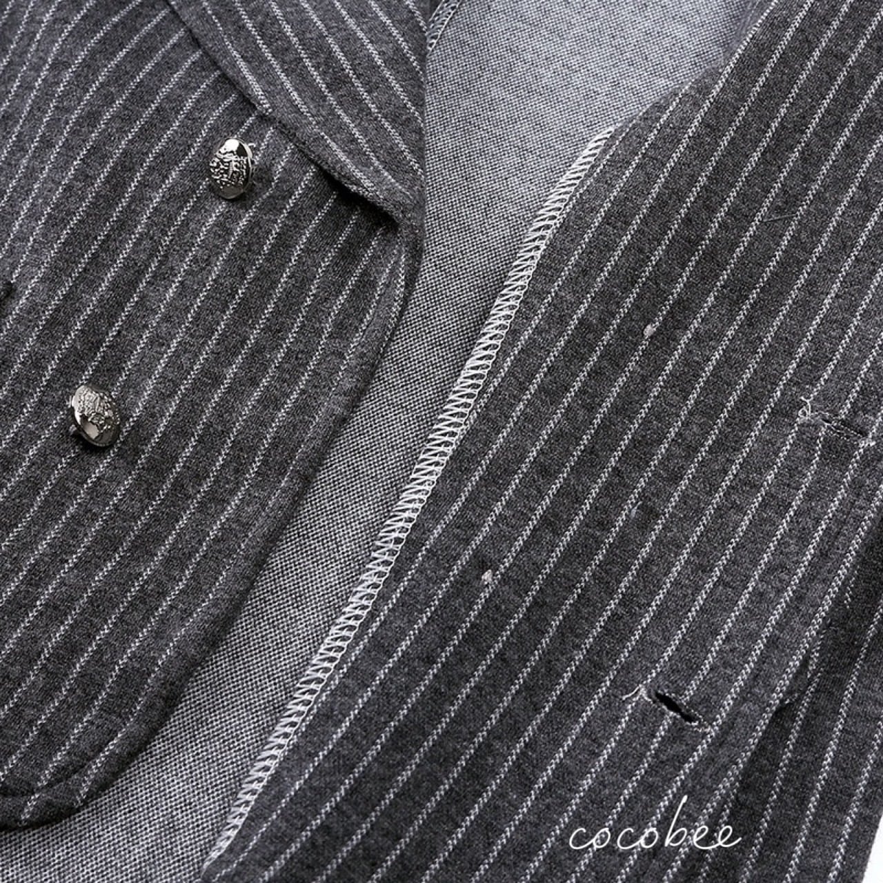 上品なストライプ柄のジャケットは、羽織るだけで一気におしゃれな印象に。