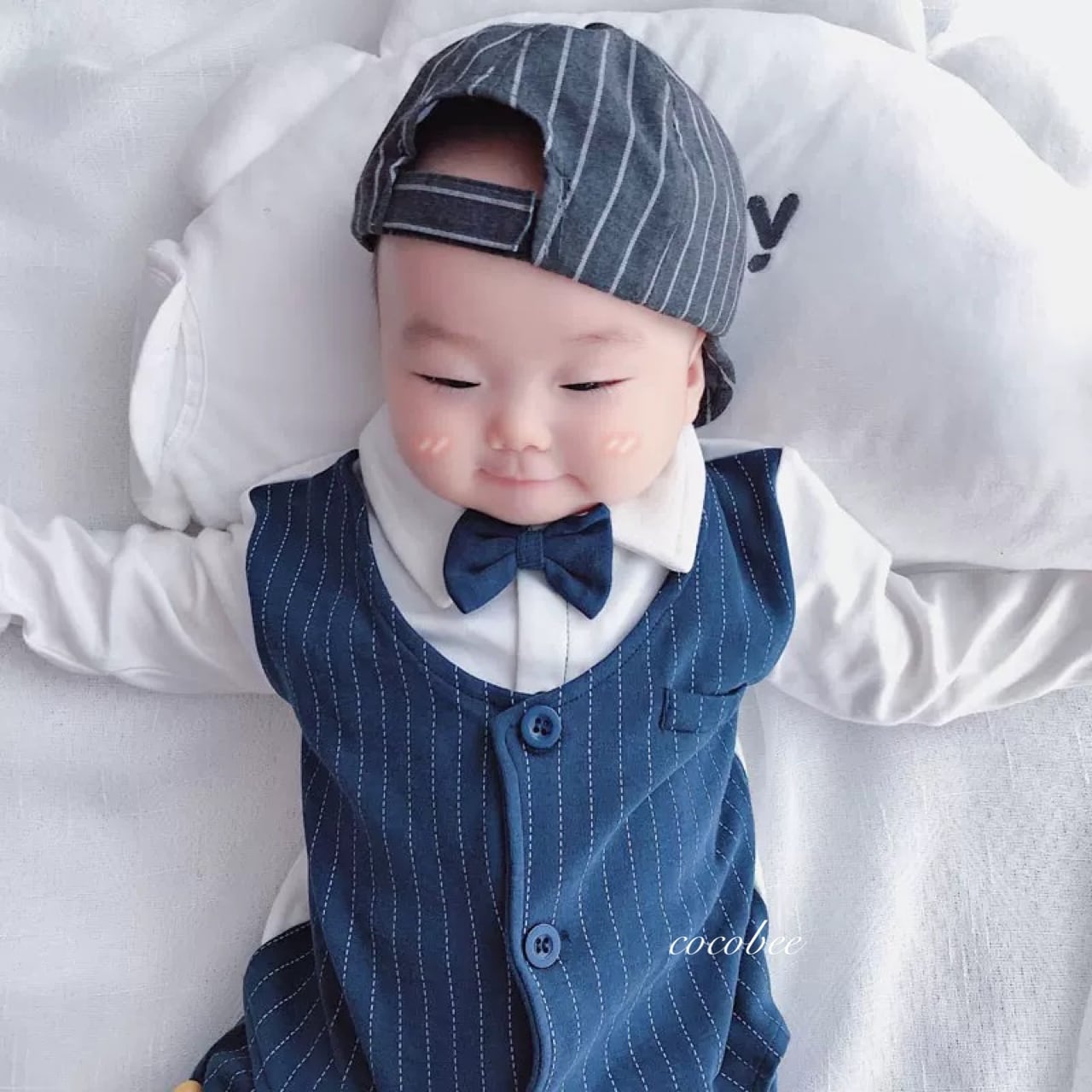 シャツ+ベストを重ね着しているようなデザインのカバーオールなので、1枚でおしゃれコーデが完成します。動きやすさもあり、赤ちゃんらしい可愛さをそのままにフォーマル感をプラス。