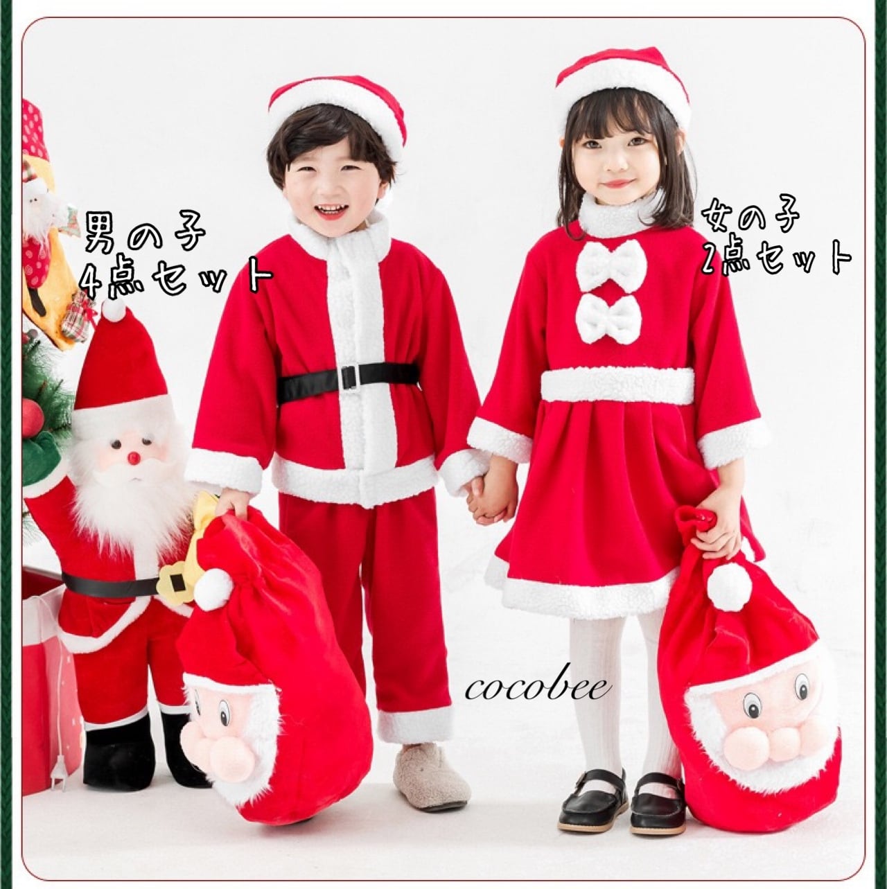 子供らしい可愛さとサンタの雰囲気を両立。写真撮影やイベントに最適です。
